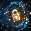 デジタルな背景に、セキュリティを象徴する鍵や盾のアイコンが描かれた画像です。先進的なテクノロジーと強固なセキュリティが共存する、現代のデジタル社会を表現します。