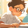 真剣な表情で机に向かって勉強する少年。努力を続ける少年の強い意志が感じられる一枚