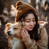 小型犬と女性が幸せそうに頬を寄せ合っている