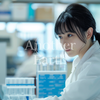 備品に囲まれた研究室の中で真剣な目をしている女性の研究員の様子