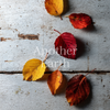 白い木目の床の上に、赤や黄色に色づいた紅葉の葉が美しく配置された画像です。秋の訪れや季節の移り変わりを感じさせる、シンプルながらも風情のある一枚。和のテイストや落ち着いた雰囲気を演出したい時に最適です。
