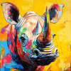 パステルカラーで彩られたサイが、まるで夢の中にいるよう。ポップでカラフルな色彩が見る者の目を惹きつける、独創的なアート作品。