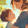 言葉を超えた温かい絆と、深い愛情を感じながら、ぎゅっと抱き合い、優しい笑顔を浮かべる親子の姿。
