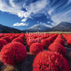 秋の訪れを告げるコキアの紅葉畑が織りなす幻想的な風景