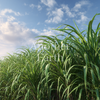 沖縄のまぶしい太陽の下で、青空に向かってまっすぐ伸びるサトウキビ畑の画像です。南国の強い生命力と、広大で開放的な風景が、見る人に清々しいエネルギーと夏の終わりのノスタルジーを感じさせます。