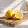まな板置かれたシンプルで美しいレモンの画像。クリーンなイメージがオーガニックやナチュラルなライフスタイルを連想させ、健康的なメッセージを伝えます。