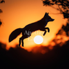 夕焼け空を背景に一匹のキツネが躍動感あふれる姿を見せる一枚です。黄金色に輝く毛並みが夕日に照らされ一層美しさを増しています。自由奔放に飛び跳ねる姿は生命力に満ち溢れ、見る者に元気を与えてくれます。