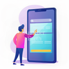 巨大スマホを操作する男性