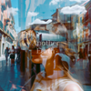 VR機器を付けて美しい街並みを見ている女性のイメージ