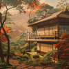 歴史のある日本の建造物と紅葉のコントラストが厳かな雰囲気を漂わせているイラスト