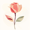 この絵画は、シンプルな線と淡い色調で描かれた、一輪のピンクのバラを表現しています。花びらの繊細な曲線と、葉の柔らかな緑色が、静寂と優美さを醸し出しています。この作品は、自然の美しさや愛や希望といった感情を象徴しています。
