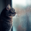 しとしと降る雨の中、窓の外をじっと見つめる猫の姿。雨音と静けさが漂う、どこか物憂げで美しい一場面を切り取った一枚です。